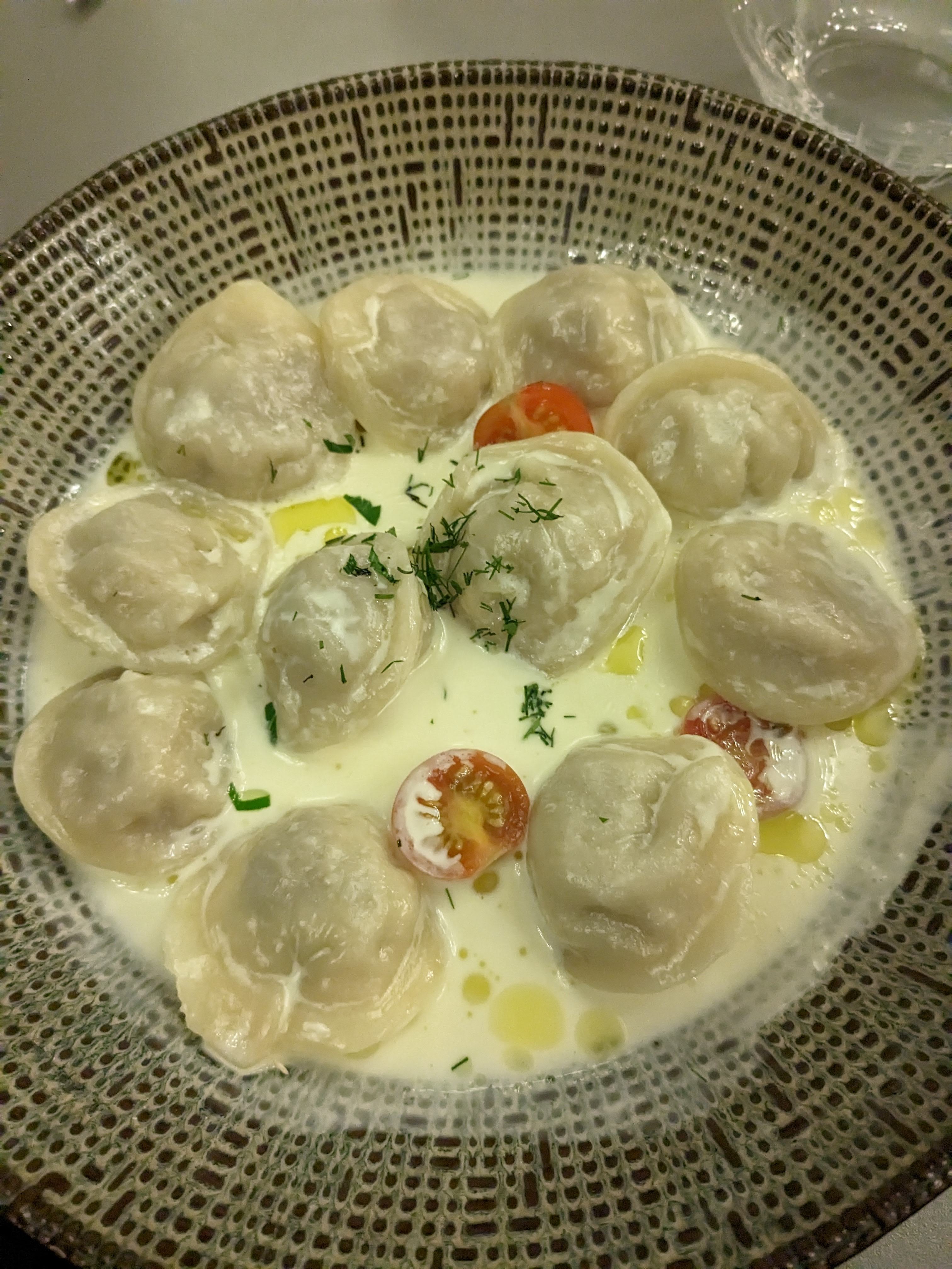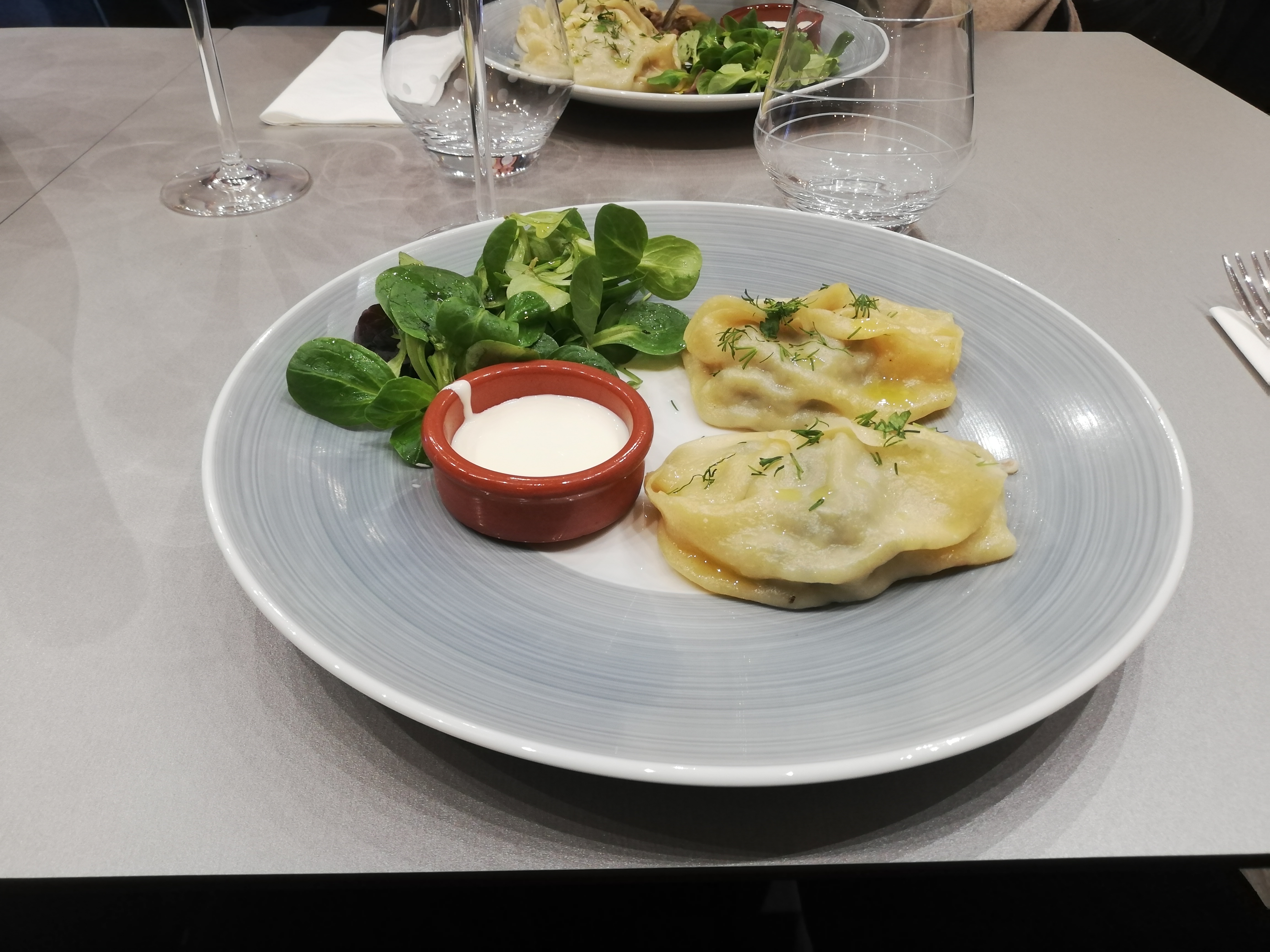 Très bons raviolis végétariens , plov copieux jolie décoration serveur très aimable mais pratiquant très peu le français ..😊l anglais est utile ..